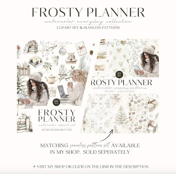 This Frosty Planner Watercolor Collection includes 2 separate listings: